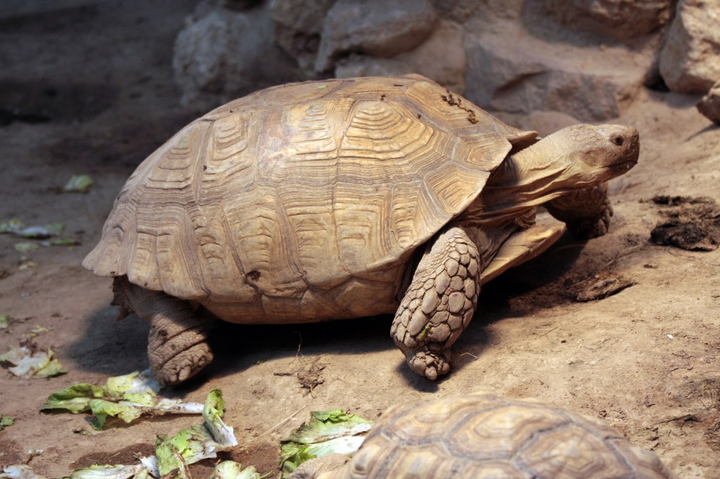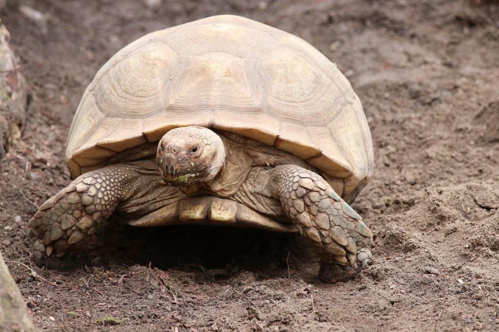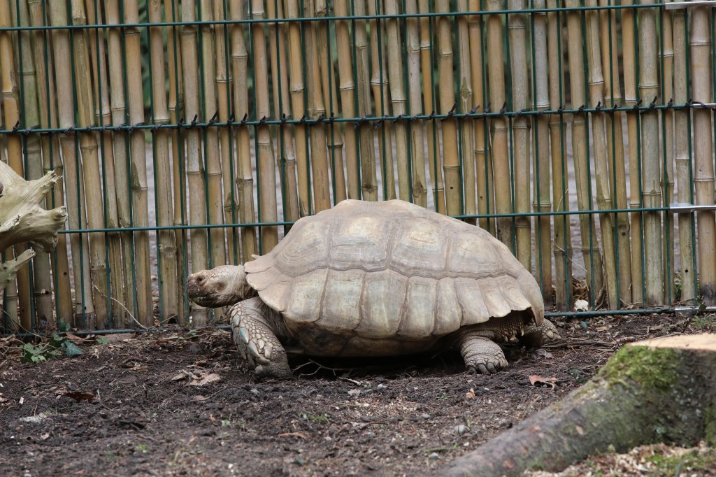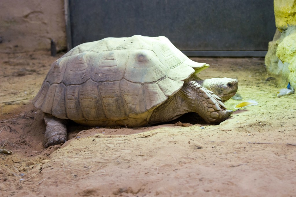 Die folgenden Bilder einer Spornschildkröte entstanden 03/2023 im Zoo Augsburg