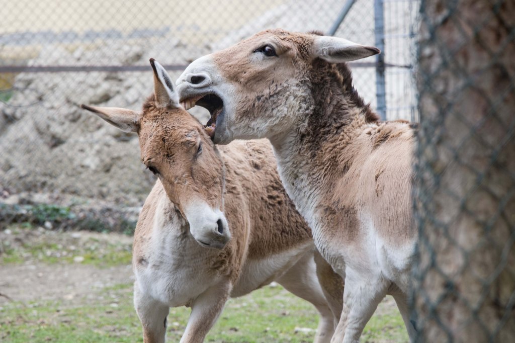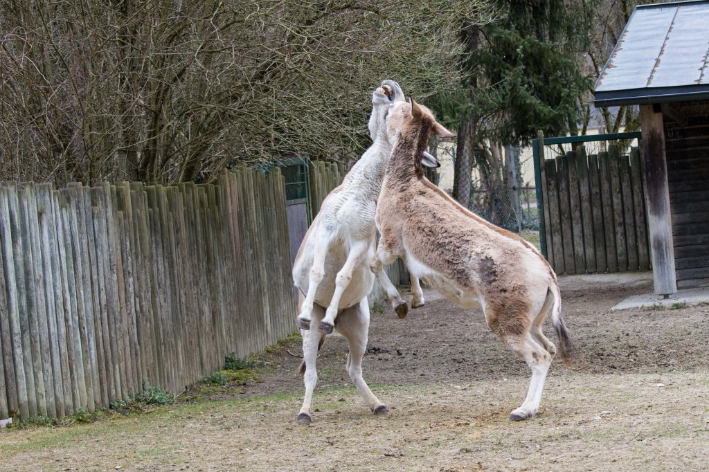 Die folgenden Bilder der kämpfenden Onager entstanden 03/2023 im Zoo Augsburg