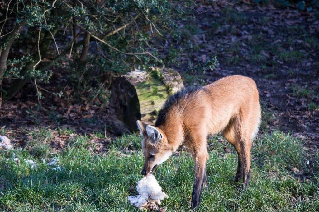 Auch wenn sein Aussehen an einen hochbeinigen Fuchs erinnert, ist er mit den südamerikanischen Vertretern dieser Art wie zum Beispiel den Kampfüchsen* oder Waldhunden nur sehr entfernt verwandt. Dies gilt auch für eine Verwandtschaft mit Wölfen,trotz des irreführenden Namens. Charakteristisch ist jedoch die dunkel gefärbte Mähne im Nacken-/Schulterbereich. Dieser Teil des Namens ist also korrekt. Bereits bei seiner Einwanderung aus dem nördlichen Teil Amerikas hatten sich die Entwicklungslinien getrennt und so wird er heute als eine eigene Art (Chrysocyon brachyurus) unter den Wildhunden klassifiziert. Mit dem Ende des Pleistozäns vor ca. 12.000 Jahren ist er auch der letzte Überlebende der südamerikanischen Großtierfauna.